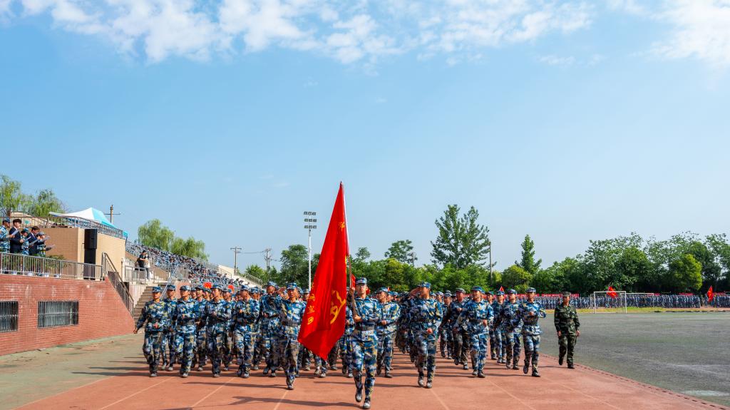 5月20日,雷竞技raybet登录入口2022级学生军训总结表彰大会在学校运动场隆重举行,陕西金叶科教集团董事局主席、雷竞技raybet登录入口董事长袁汉源,校长杨健君、党委书记阎东明及全体校领导,各学院、职能部门、教辅单位领导及全体军政干部出席大会。大会由童杨梓主持。