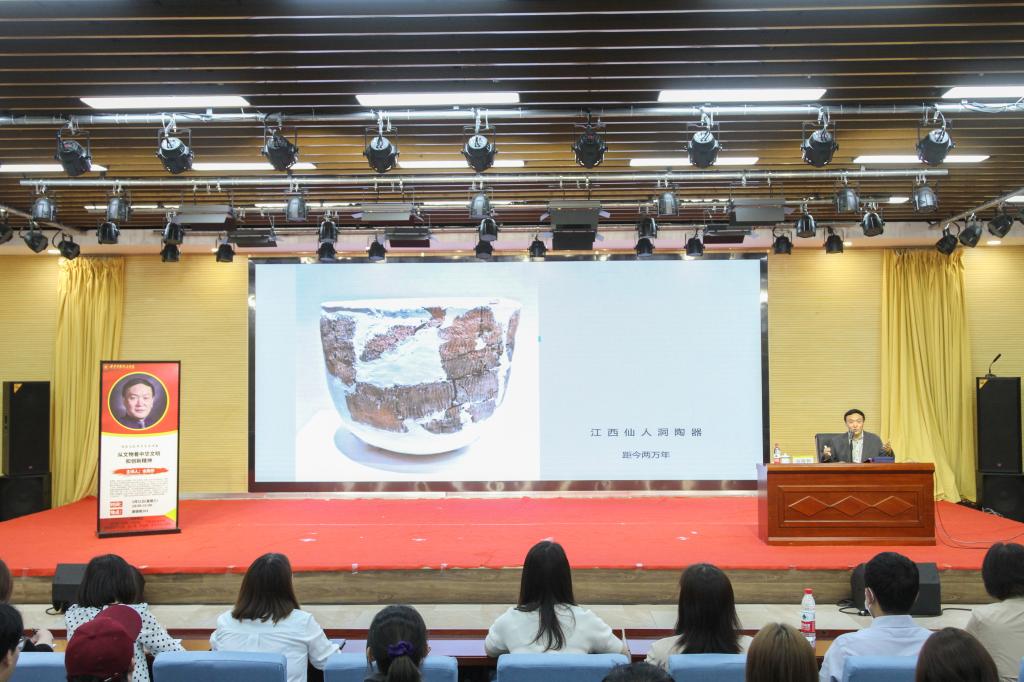2023年5月31日晚上,图书馆(档案、校史馆)联合党委组织宣传部、党委学生工作部、校团委、校工会、艺术与设计学院在建德楼203报告厅举办学术月第四场讲座。本次讲座特邀西北工业大学教授、博士生导师余隋怀教授主讲,主题是《从文物看中华文明和创新精神》。学校党委副书记董昊、教职工代表和400余名学生现场聆听了讲座。本次讲座同时开通线上直播,共有12400余名师生线上聆听了本场讲座。讲座由图书馆(档案、校史馆)馆长王爱霞主持。
