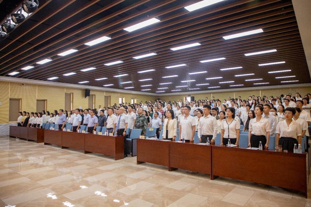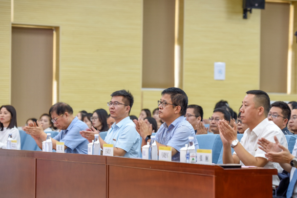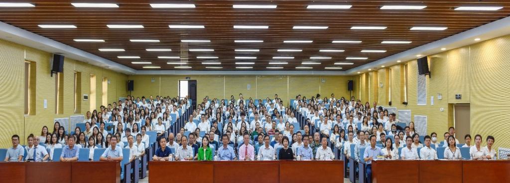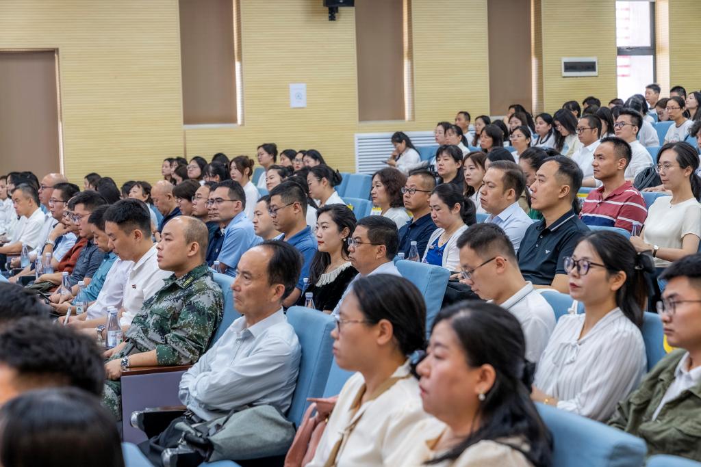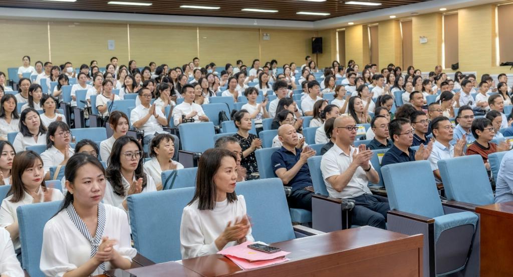 2023年8月31日上午,学校2023年新入职教职工培训班结业式在建德楼203报告厅隆重举行。董事长袁汉源携明德源教育集团助理总裁张琳、常务副总裁王鹏飞、总裁助理李瑞出席结业式,全体校领导、各单位负责人、授课教师及新入职教职工近300人参加,结业式由人力资源处处长白秦川主持。