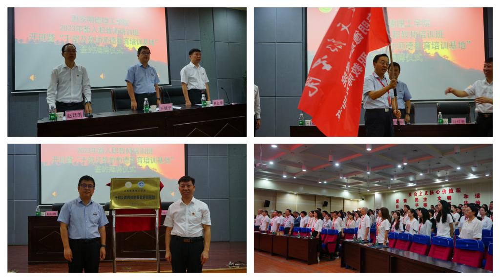 结业式在庄严的国歌声中正式开始。来自不同学院的8名新教师代表分享了学习心得。董事长袁汉源及参会领导为新教师颁发结业证书并佩戴校徽。