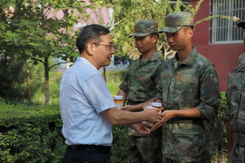 随后杨健君校长为全体军政干部送上防晒霜等慰问品,并叮嘱大家军训期间注意身体,及时补充水分防止中暑,劳逸结合安全施训。
