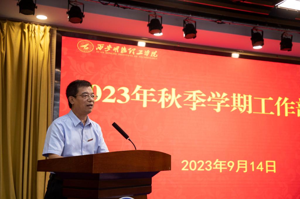 校党委书记阎东明在主持讲话中就做好学校秋季学期工作提出四点要求:一是要下大力气做好稳定安全工作,把稳定安全当做头等大事,统筹好发展与安全两个大局,切实认识到发展是安全的基础和目的,安全是发展的条件和保障,做到发展和安全同步推进;二是要持续开展好“教学评建攻坚年、和谐校园建设年、干部作风能力提升年”活动,创新工作思路,创新管理模式,准确识变、科学应变、主动求变,努力推动高质量发展;三是要持续提升作风能力,坚持理论指导实践,不断强化实践能力,在实践锻炼中树立正确的政绩观,涵养务实的工作作风,着力提升履职尽责的能力本领;四是要有效提升基层党组织和党员在学校事业发展中的作用,做到党建与事业发展深度融合,着力发挥好党组织的战斗堡垒作用和党员的先锋模范作用,以高质量党建引领推动高质量发展。阎东明最后强调,希望广大党员干部和师生员工同心同德,群策群力,抢抓时间,振奋精神,主动作为,真抓实干,圆满完成秋季学期各项攻坚任务,共同开创学校高质量转型发展的新局面!