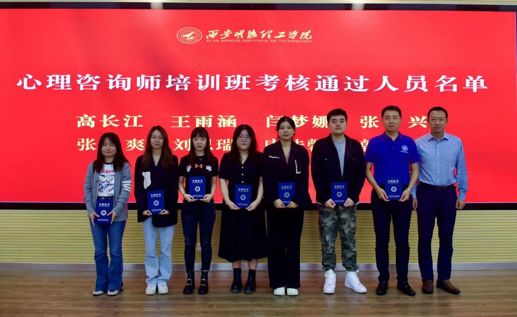 在心理咨询师培训班结业典礼上,薛飘宣读了心理咨询师培训班考核通过人员名单,心理咨询师培训班考核通过学员代表张爽进行了发言,董昊副书记为心理咨询师培训班考核通过学员颁发了结业证书和心理咨询师资格证书。据悉,学校心理咨询师培训班于2022年11月17日举行了开班仪式,组织各二级学院党委副书记、心理辅导员、心理健康教育教师共12人参加了本次培训。在繁忙的工作之余,学员们牺牲休息时间勤奋学习,现有8人顺利通过心理咨询师培训班考核并获得了由中科院心理研究所认证的心理咨询师资格证书。