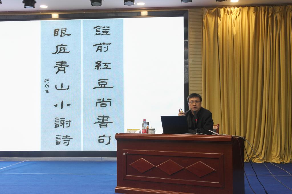 报告会上,钟镝老师讲到,书法艺术是中国文化的重要组成部分,是中华文明的重要表现形式。通过了解、认知、学习书法艺术是对中国传统文化和中华文明最直接的传承,理性的认知具有3000年无断代传承的书法艺术,以书法史为依托,认知中国特有的汉字体系演变过程中逐渐形成的书法艺术的审美标准。包含时代特征和地域特色的建立以及个体审美的独立表达之间的关联及矛盾,融合的方式和趋势。从而清晰和明确的了解和认清书法艺术和实用书写之间的关系和区别,找到了解汉字、书法、艺术的门径和学习书法艺术的捷径以及对整体的中国文化和中华文明的审美认知。