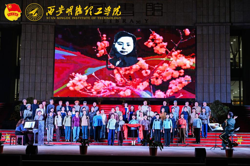 本次演出是由西安市退役军人事务局指导西安市退役军人文化艺术团在经典民族歌剧的基础上创编的《江姐》清唱剧,整场演出分为“初上华蓥”、“前赴后继”、“赴汤蹈火”、“红梅报喜”四个乐章,讲述了共产党员江竹筠为革命英勇献身的英雄事迹,塑造一位对党无限忠诚、坚定顽强、铮铮铁骨、浩然正气与敌人斗争到底的革命斗士形象。以爱国主义、英雄主义作为主旋律,提醒人们铭记历史、缅怀先烈、珍爱和平、开创未来。跌宕起伏的剧情,气势磅礴的历史场景,豪迈的英雄主义画面,感染了在场的每一位师生。