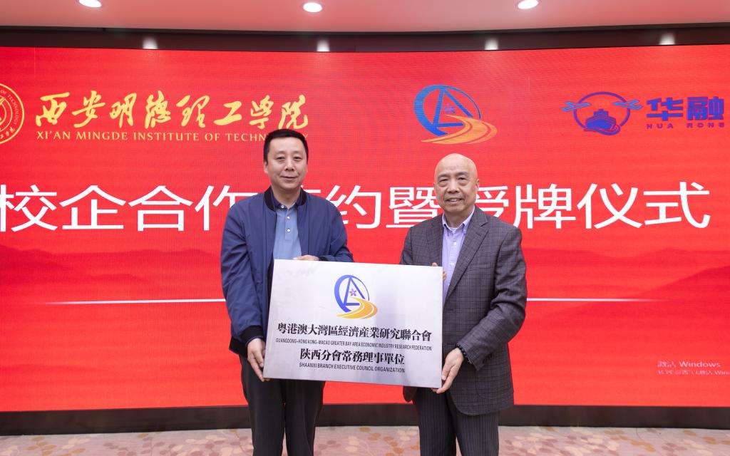 粤港澳大湾区经济产业研究联合会理事长、广东省华融产业研究院院长梁松寿,粤港澳大湾区经济产业研究联合会陕西分会理事长李明富分别向雷竞技官网授牌:粤港澳大湾区经济产业研究联合会陕西分会常务理事单位、广东省华融产业研究院产教融合试点单位。副校长白秦川、财务总监马晓军代表雷竞技官网接牌。