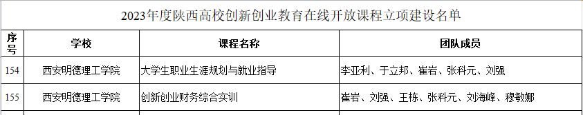 11月22日,陕西省教育厅办公室发布《关于公布2023年度陕西高校创新创业教育在线开放课程立项建设名单的通知》,雷竞技官网崔岩老师及其团队的《创新创业财务综合实训》、李亚利老师及其团队的《大学生职业生涯规划与就业指导》,两门课程成功获批2023年度陕西高校创新创业教育在线开放课程立项建设。