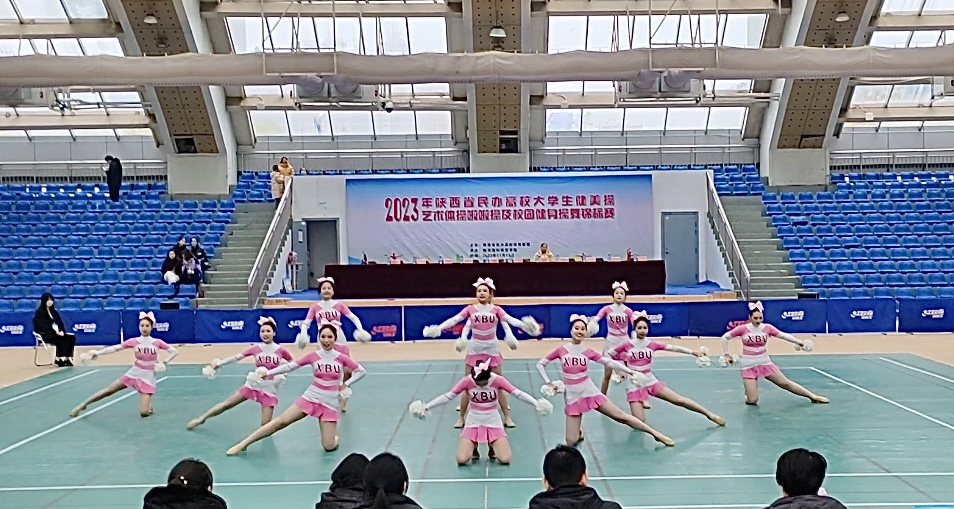 为进一步提高陕西省民办高校大学生操舞项目竞技水平,丰富大学生体育文化生活,促进校际阳光体育活动和体育赛事的交流发展,由陕西省民办高校体育联盟主办的2023年陕西省民办高校大学生健美操、艺术体操、啦啦操及校园健身操舞锦标赛于陕西省国际商贸学院体育馆举行。共有来自陕西省10所民办高校的百余名运动员参加了操舞类11个项目。