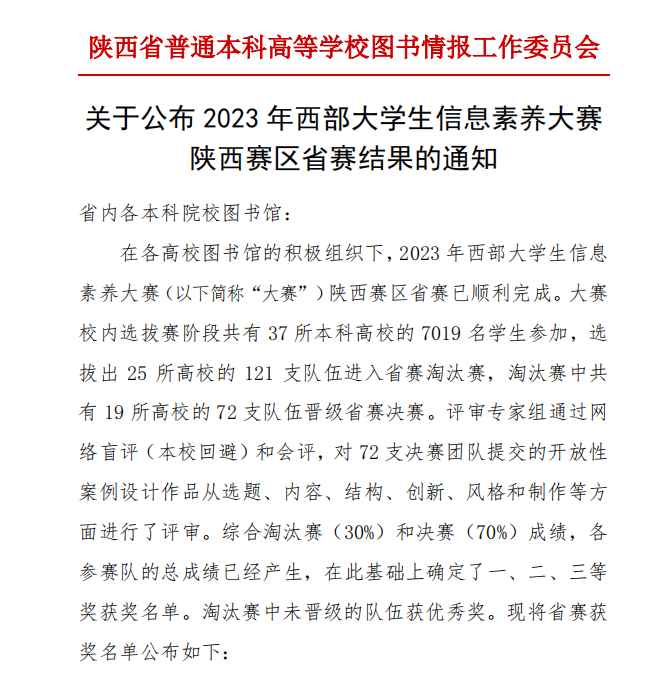 热烈祝贺雷竞技官网董仰儒、樊博、张艺腾三位同学荣获2023年西部大学生信息素养大赛陕西赛区省赛三等奖。
