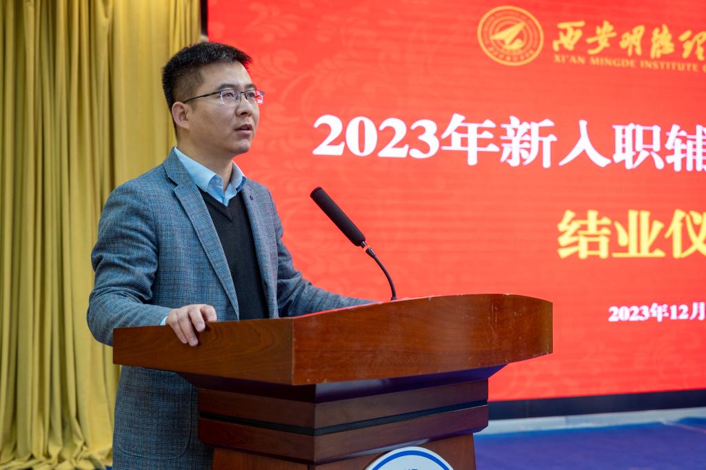 为进一步加强辅导员队伍职业化、专业化、专家化建设,帮助新入职辅导员了解岗位需求、明确职责定位、提升履职能力、坚定职业理想,按照学校《关于进行2023年新入职教职工培训的通知》文件要求,党委学生工作部联合学校人力资源处、教师发展中心组织开展2023年新入职辅导员培训工作。12月6日,学校在建德楼203报告厅组织召开了2023年新入职辅导员培训班结业仪式,学校副校长白秦川、副校长刘星、教师发展中心副主任郝丽静、党委学生工作部副部长童杨梓、各学院党委书记、副书记以及全体学生工作干部参加结业仪式。