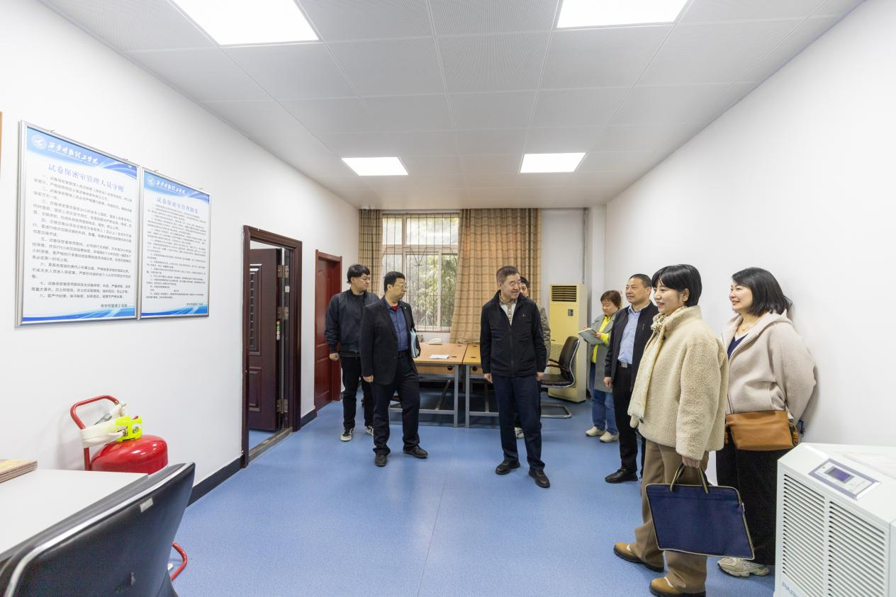 检查组实地考察了全国大学英语四六级考试主控监控大屏室、试卷保密室、标准化考场等场地,检查了相关考试设施设备。学校副校长朱延波、教务处副处长文亮陪同了检查。