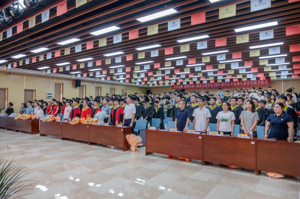 时至六月,序自三夏,时光荏苒,又到离别时节;记忆犹新,相遇犹在眼前。6月26日上午,信息工程学院在建德楼203举行2024届学生毕业典礼暨学位授予仪式。出席典礼的有校长王志刚,学校学位评定委员会委员、学院执行院长翟书颖,学校学位评定委员会委员陈世亮,学院党委书记肖千春,学院副院长范晖、张伟岗,学院党委副书记高长江,学院办公室主任尹莹,各专业负责人、家长代表、全体2024届毕业生。典礼由学院党委书记肖千春主持。