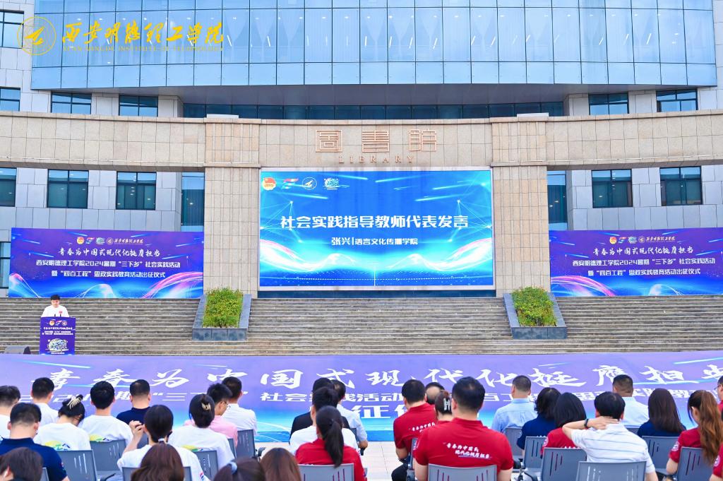 6月27日,学校在中心广场隆重举行2024年暑期“三下乡”社会实践活动暨“四百工程”思政实践教育活动出征仪式。学校校长王志刚,副校长白秦川、朱延波、刘星、陈鹏、王斌宁,各单位负责人,全体社会实践指导教师及2000余名学生志愿者参加出征仪式。