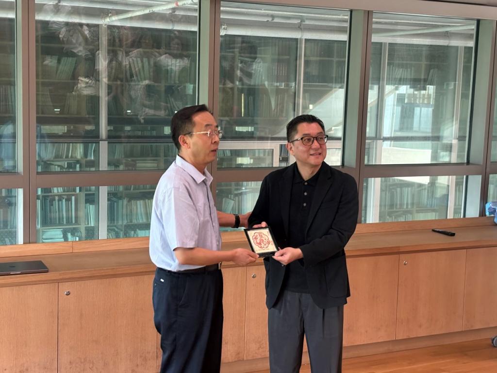 白秦川向Daniel Mei赠送了雷竞技官网师生原创制作的非遗剪纸礼物。