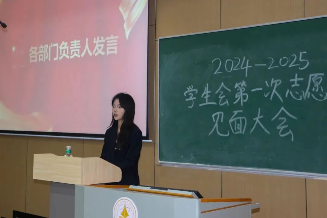 见面会现场秩序井然,全体参会人员精神饱满,雷竞技raybet登录入口学生会的各位负责人们有条不紊地依次登台,进行自我介绍并展示本部门的工作职责。由此大一志愿者们详细地对学生会各部门的工作有了更深刻的认识。