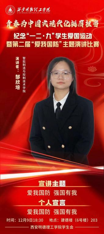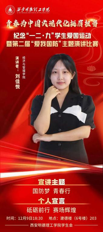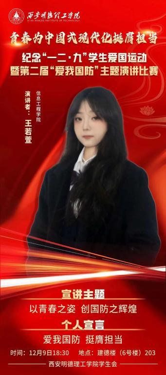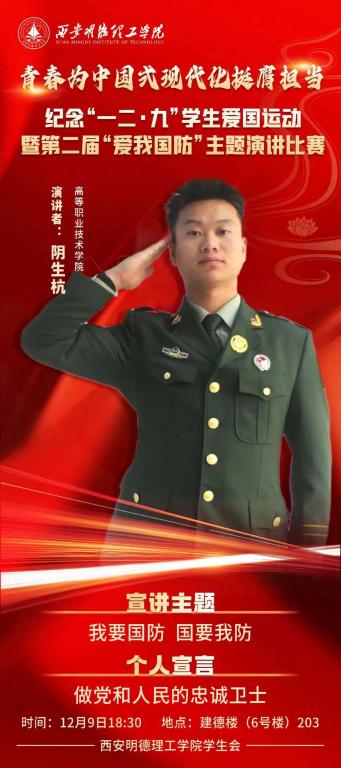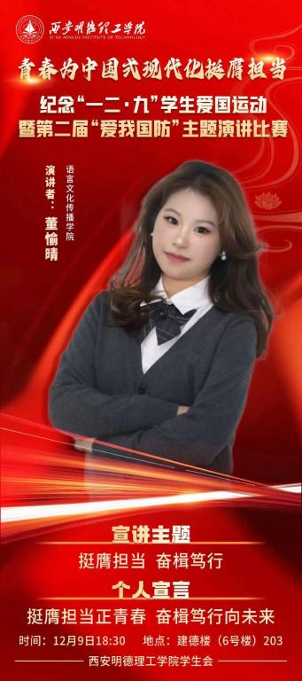 青春为中国式现代化挺膺担当纪念“一二·九”学生爱国运动暨第二届“爱我国防”主题演讲比赛。