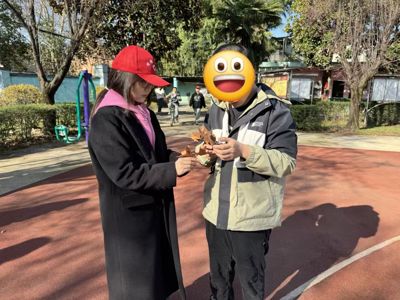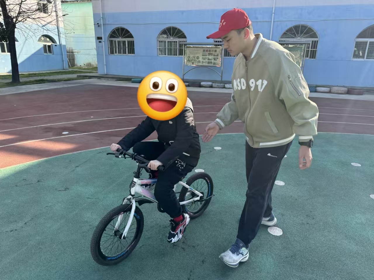 义卖结束后,志愿者带领孩子们在操场自由活动。有的志愿者教孩子们拍打篮球,有的陪伴骑行儿童自行车。孩子们天真烂漫的笑脸与志愿者热情的鼓励交织,整个操场洋溢着欢乐氛围。