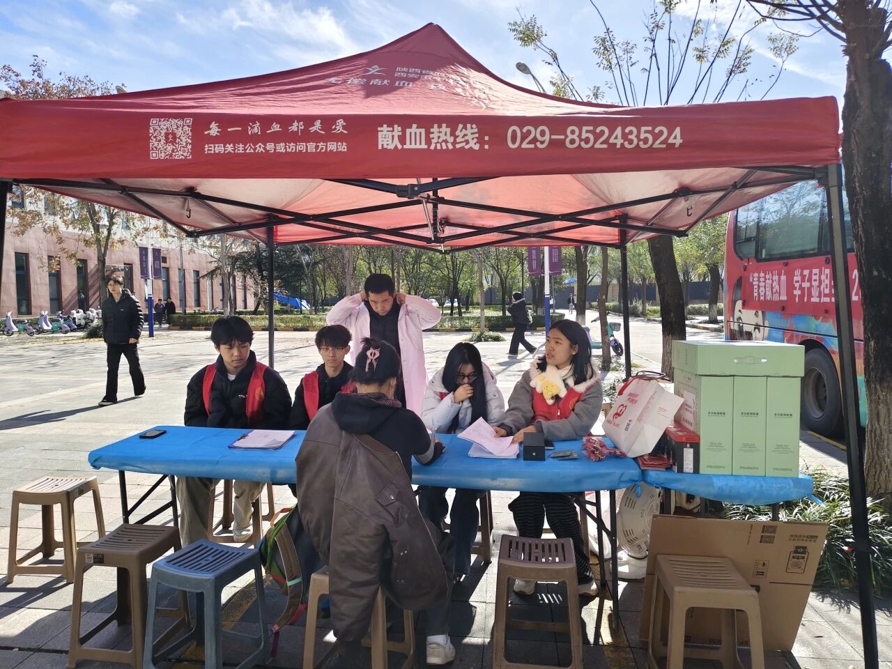 活动现场,采血车刚停稳,便有师生陆续赶来。志愿者们分工明确:有的引导大家扫码登记,有的协助医护人员核对信息还有的志愿者在耐心解答献血流程疑问,引导师生有序排队,现场秩序井然,氛围温暖而热烈。