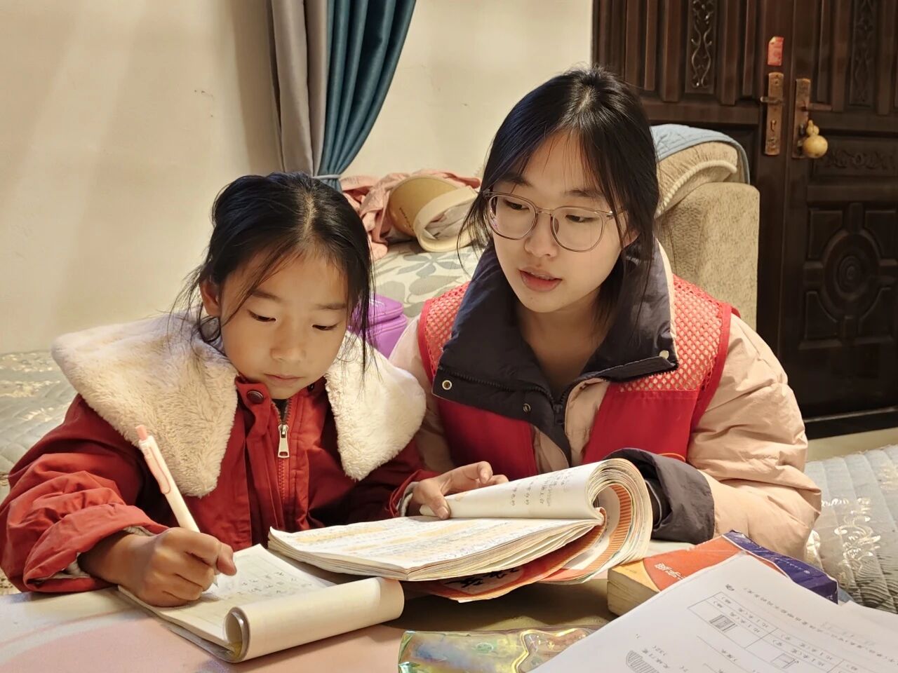 在负责人统筹带领下,志愿者们整装有序出发,队伍步履整齐、纪律严明。抵达目的地并分发资料卡后,志愿者们精准找到对应受教家庭,礼貌问好后迅速投入辅导,结合前期辅导进度,细致巩固已学重难点、梳理知识框架,针对性预习新内容,逐题排查作业漏洞并耐心讲解解题思路,全程专注用心、细致尽责。