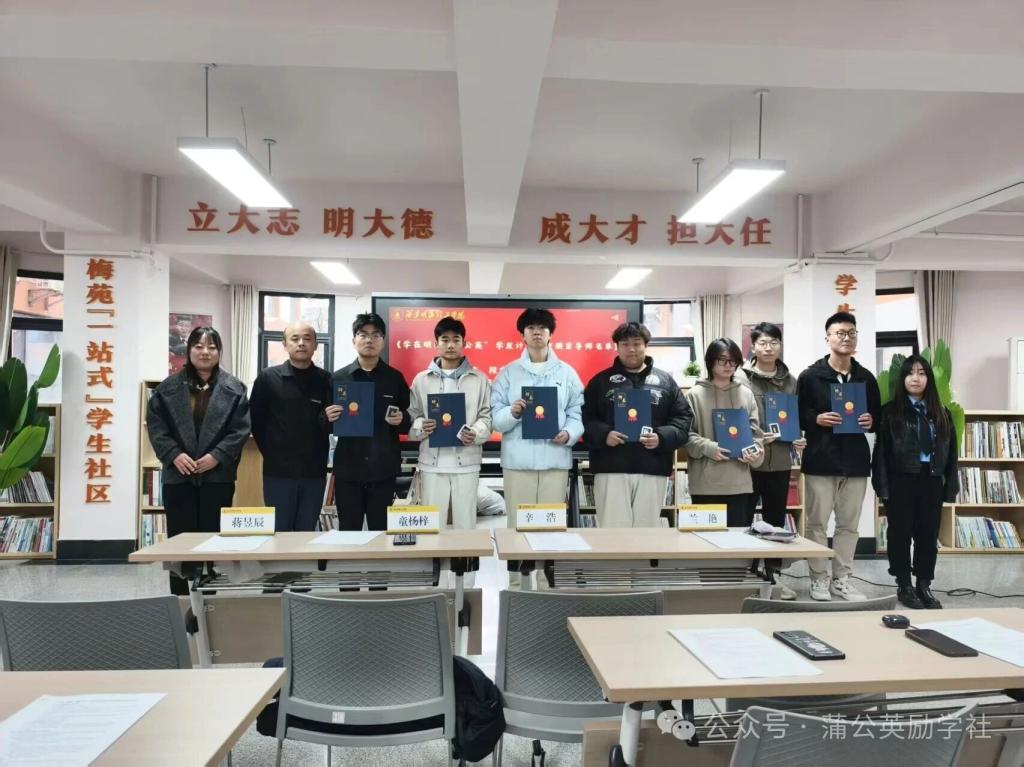 颁奖环节,主持人宣读颁奖词,肯定了优秀朋辈导师在推动学风建设、助力同学成长中的重要作用,也表达了对“学友计划”未来发展的殷切期望。童杨梓老师、蒋昱辰老师和兰艳老师为七位优秀朋辈导师逐一颁发荣誉证书及奖品并合影留念,定格这份属于朋辈引领者们的荣耀。