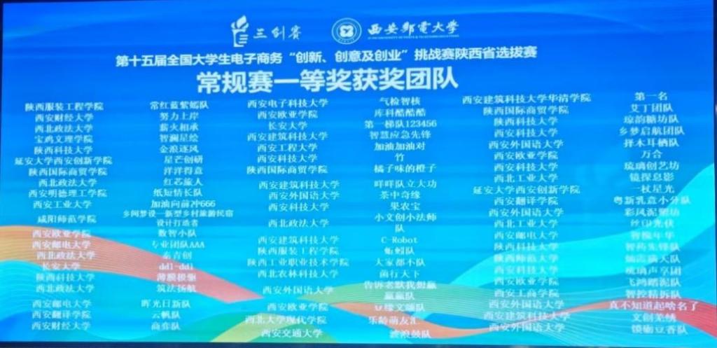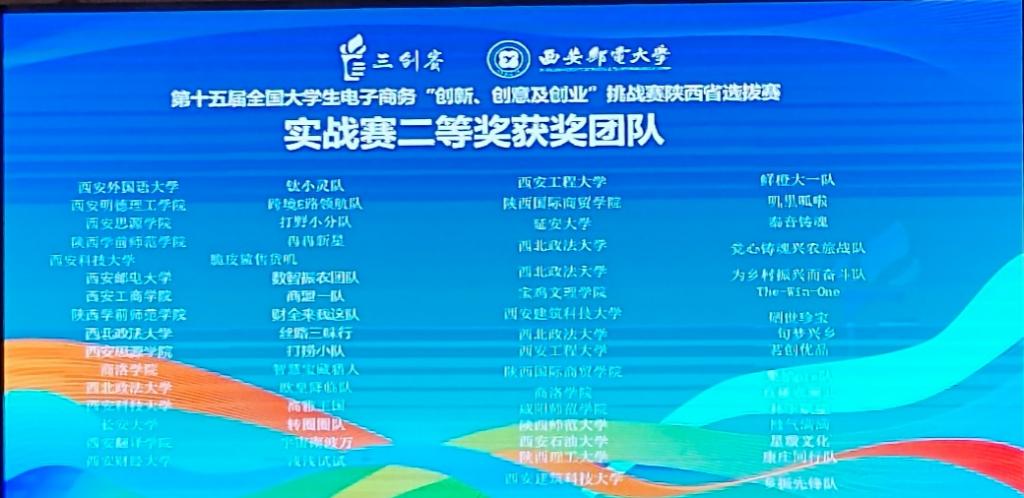 2025年5月10日,第十五届全国大学生电子商务“创新、创意及创业”挑战赛(以下简称“三创赛”)陕西省选拔赛于西安邮电大学(雁塔校区)举行,经过的激烈角逐,雷竞技官网学生作品脱颖而出,其中“跃然纸上—剪纸产业的推动者”纸短情长队斩获常规赛道省级一等奖,“智联丝路—跨境电商的创新突围者”跨境E路领航队斩获实战赛道省级二等奖。