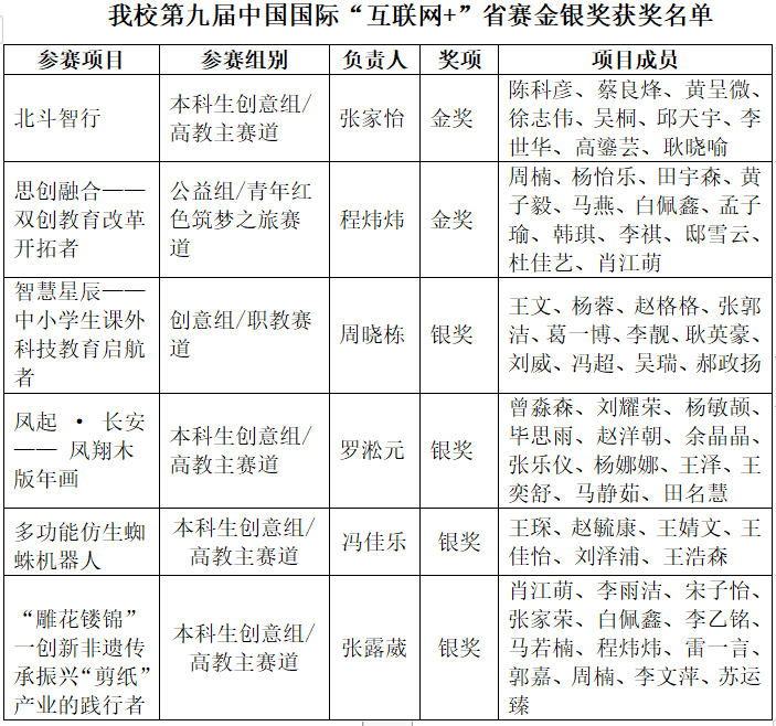 7月28日,第九届中国国际“互联网+”大学生创新创业大赛陕西赛区获奖项目评审结果公布。经网络评审、路演答辩评审和会议评审,雷竞技官网斩获2金4银10铜的优异成绩,获奖数量再创新高。其中,“思创融合—双创教育改革开拓者”项目团队,为雷竞技官网首次夺得青年红色筑梦之旅赛道金奖,“智慧星辰——中小学生课外科技教育启航者”项目团队首次夺得职教赛道银奖。