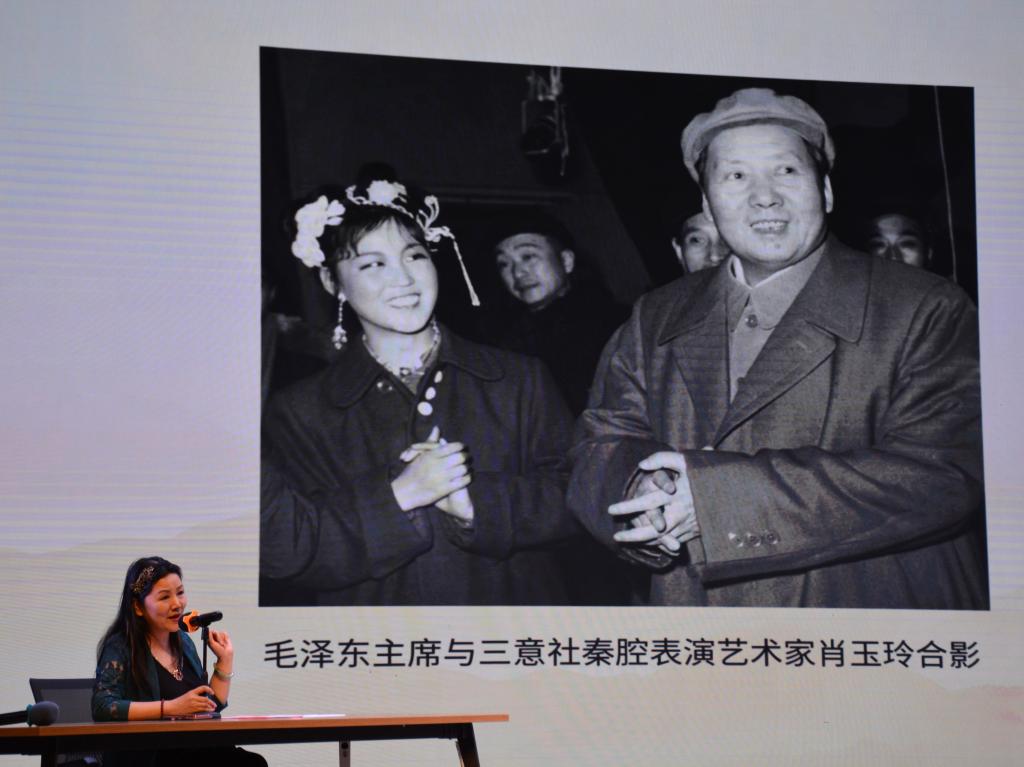 参观完展厅后,全国三八红旗手侯红琴在三意社排练厅为大家上了一堂生动的主题党课。通过对三意社128年的光辉历史的讲述以及结合自身的奋斗经历,分享著名秦腔片段《司马迁》、《陕北往事》精彩片段,结合自己在给中亚五国论坛时给外国元首夫人演出的经历,让大家对于三意社、文艺工作者拥有一个崭新的认识。同时,侯红琴同志鼓励广大学生党员,要时刻铭记党员身份,不忘入党誓词,争当模范,做合格共产党员。
