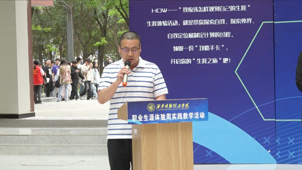活动伊始,副校长朱延波发表致辞。他首先对各位领导、老师以及同学们的到来表示热烈的欢迎,并强调了生涯体验周实践教学活动对于大学生个人的成长与职业规划的重要性。同时朱校长殷切的对同学们提出了三点希望:一是希望同学们准确把握当下,作为新时代的中国青年,在校期间勤于学习勇于实践,不断提高内在素质,锤炼过硬本领,进行科学的自我认知,理性探索职业世界;二是希望同学们坚定正确的航向,选对了方向才能走对路以长风破浪会有时的志气,把稳青春之舵,要以不待扬鞭自奋蹄的骨气奏响青春之歌;三是希望同学们树立远大的志向,立志民族复兴,不负韶华不负时代不负人民,在青春的赛道上奋力奔跑争取跑出当代青年的最好成绩。