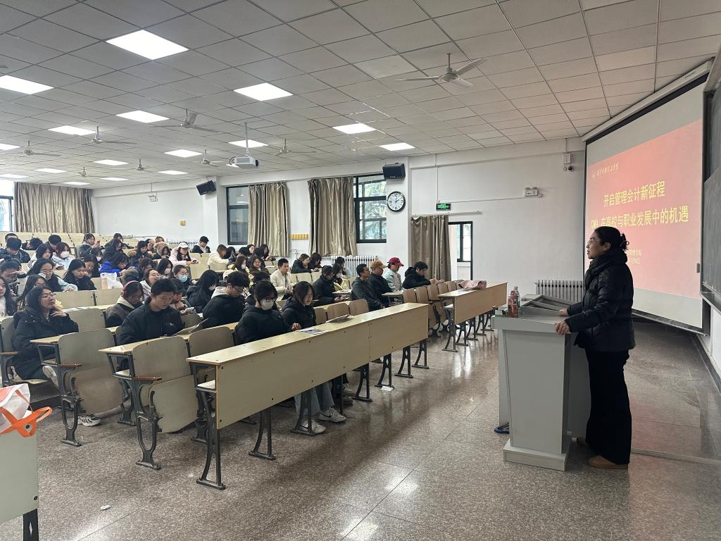 为助力学生明晰未来职业方向,全方位提升就业竞争力,1月8日,经济与管理学院在建德楼205教室举办CMA证书认证教育宣讲会,金融产业学院副院长刘敏、金融学、会计学和财务管理专业学生200余人参加了学习,宣讲会由经济与管理学院教师刘萌主持。