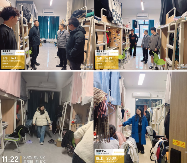 走访中,老师们与学生亲切交谈,了解学生寒假期间的生活状况,掌握学生思想动态,对学生宿舍安全隐患进行排查,向学生介绍了诉求反馈的路径,鼓励学生遇到困难,积极寻求学院帮助。老师们引导学生调整好作息时间,全身心投入到新学期的学习和生活中;课余时间,深入图书馆博览群书、开拓知识视野,走向操场、加强运动锻炼,增强身体素质;叮嘱同学们遵守宿舍管理规定,勤整内务,养成良好的生活习惯,珍惜室友情,齐心协力共同营造和谐、温馨、舒适的集体生活环境。同学们积极反馈,围绕宿舍设施维修、社区文化活动开展等方面,踊跃提出自己的想法。