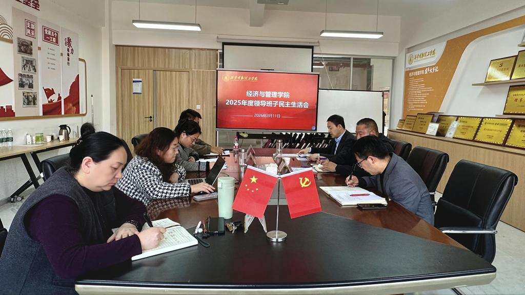 近日,经济与管理学院党委在明志楼北606召开2025年度民主生活会。学校副校长陈鹏、党委委员、党委组织宣传部副部长张亚平到会指导,会议由学院党委书记何文举主持,学院班子成员参加。