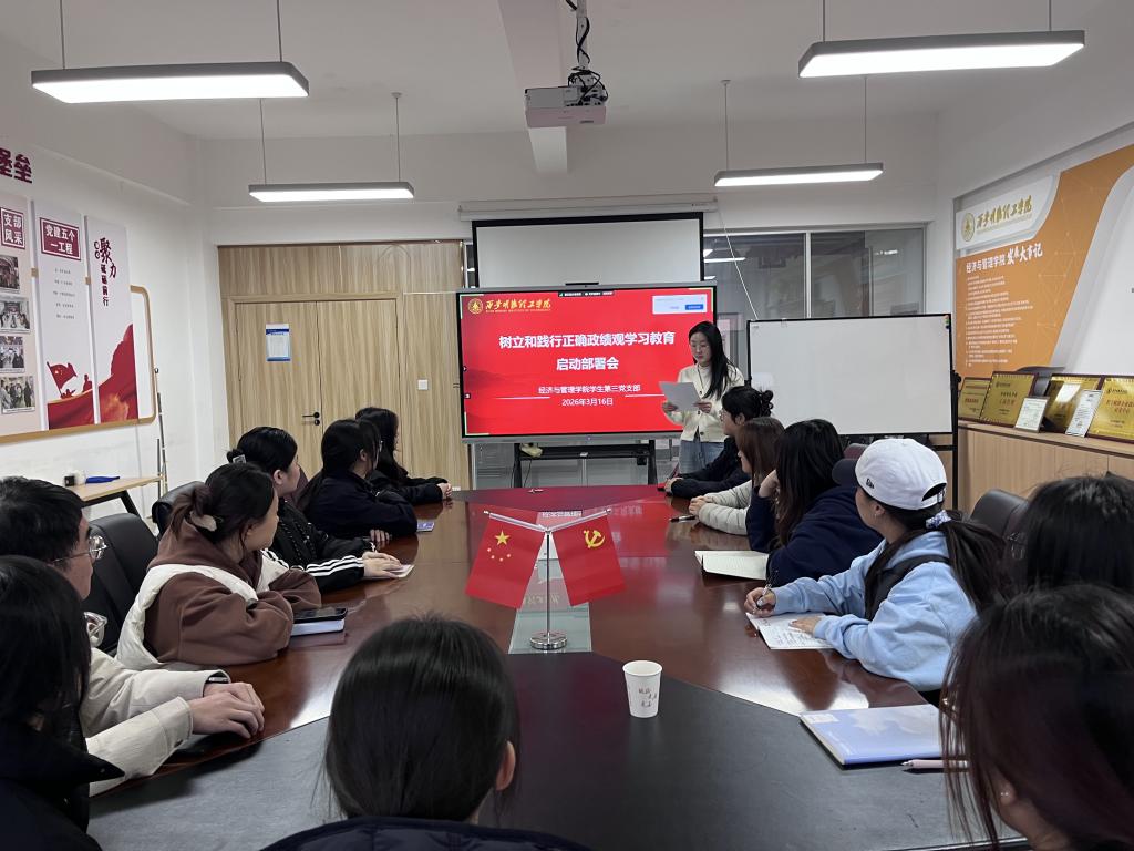 近日,经济与管理学院各党支部召开树立和践行正确政绩观学习教育启动部署会,各支部党员参加会议,会议由党支部书记主持。