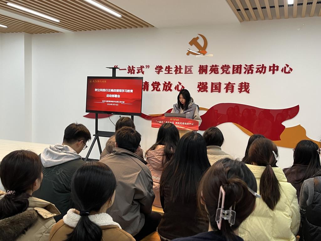 为深入学习贯彻2026年全国两会精神,引导学生党员与入党积极分子准确把握国家发展大势,筑牢思想根基、凝聚奋进力量,3月16日,经济与管理学院学生第五党支部在“一站式”学生社区桐苑党团活动中心开展2026年全国两会精神学习暨树立和践行正确政绩观学习教育专题学习会。会议由支部党员侯佳仁倬主持,支部全体在校党员及入党积极分子代表共同参与学习研讨。