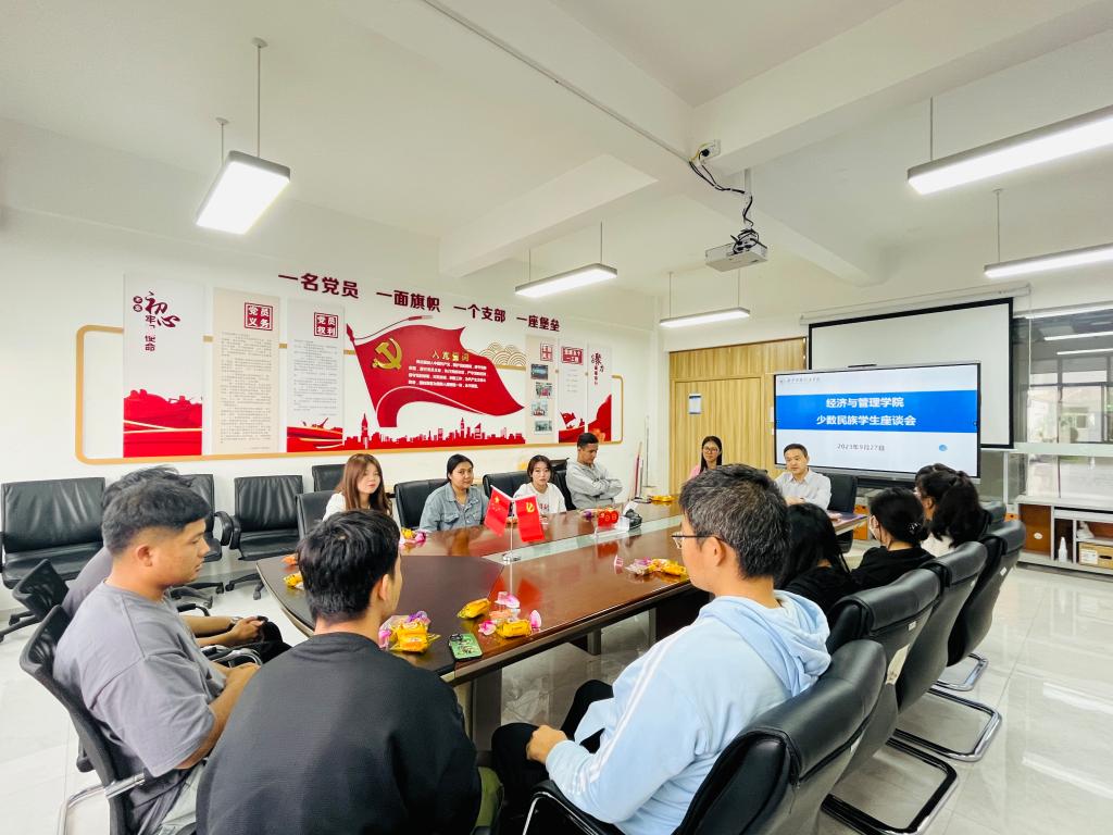 为贯彻落实中央民族工作会议精神,铸牢中华民族共同体意识,深化民族团结进步教育工作。9月27日下午,经济与管理学院在明志楼北606召开2023级新生少数民族学生座谈会,学院党委书记兼行政副院长何文举、新生辅导员罗夫惠、汪宏宇和少数民族学生代表参加了座谈会,会议由罗夫惠主持。