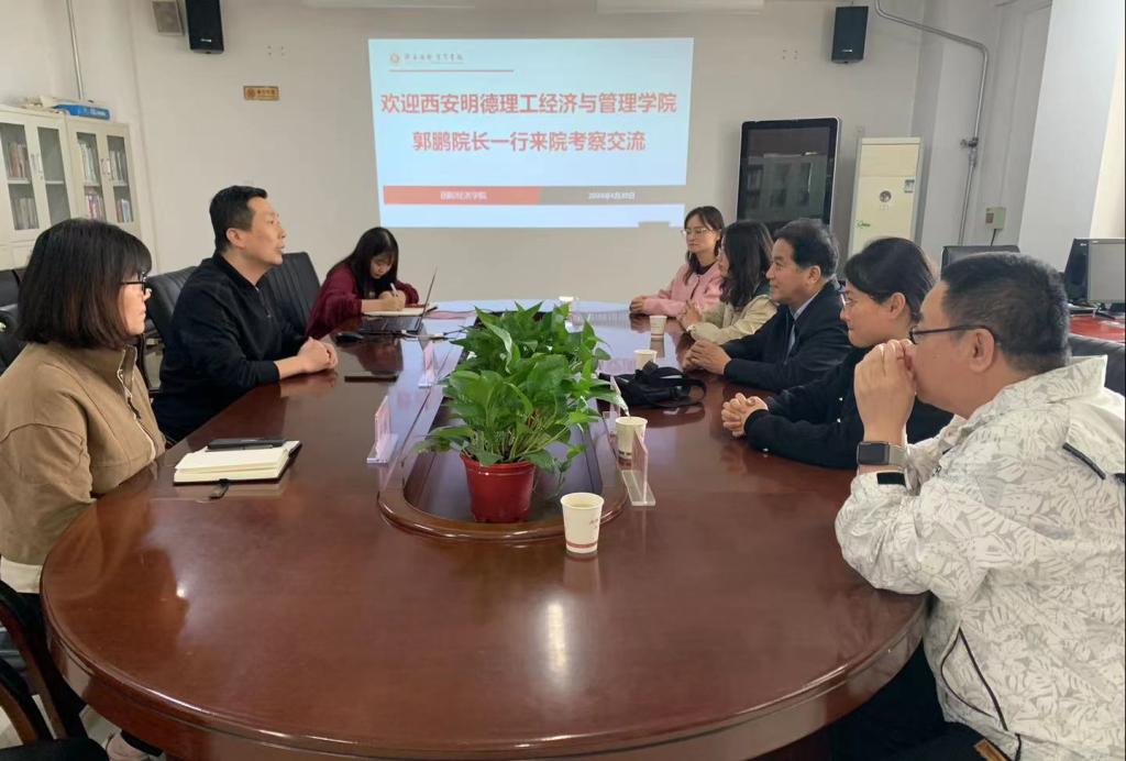 为进一步加强学院实验室建设,提高实验课教学水平,提升学生的实践创新能力。4月30日,经济与管理学院院长郭鹏、副院长许萍、国际经济与贸易专业负责人王维新、会计学专业负责人张荣斌、实验技术员薛姣一行5人赴陕西国际商贸学院国际经济学院调研学习。陕西国际商贸学院国际经济学院院长冯明、院长助理张丽等参加座谈交流。