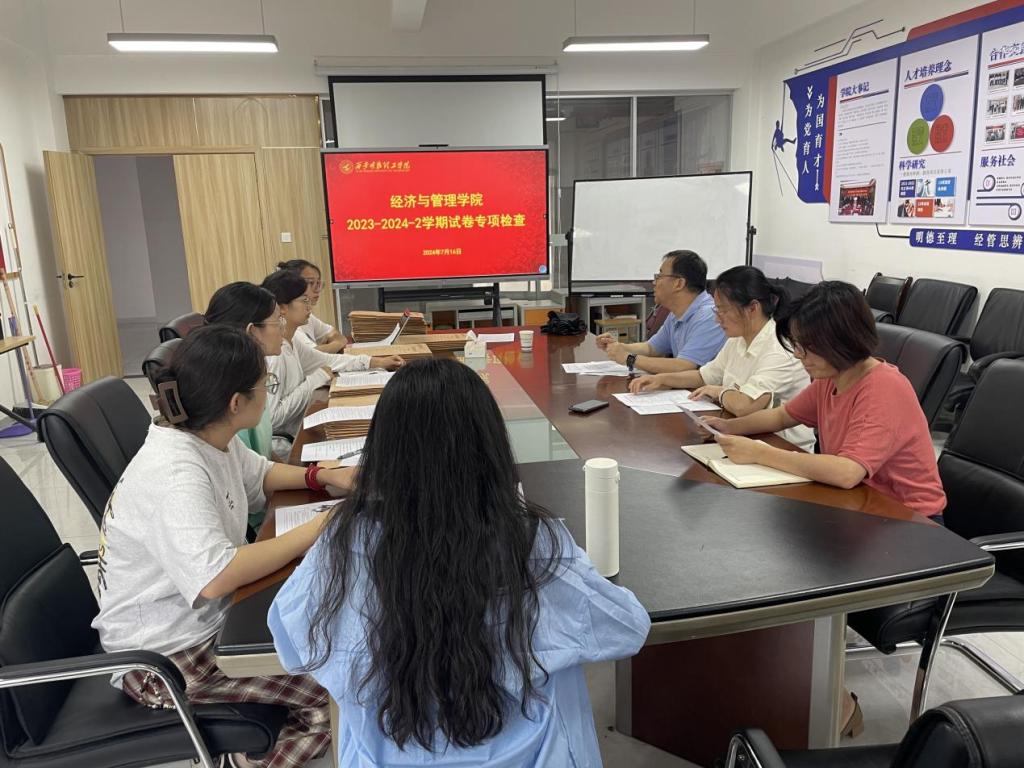 为了进一步强化教学质量监控,提升教学管理的规范性和归档材料的完整性,经济与管理学院在各专业自查与互查的基础上,组织院级教学督导和专业教师对2023-2024学年第二学期的试卷进行抽检。
