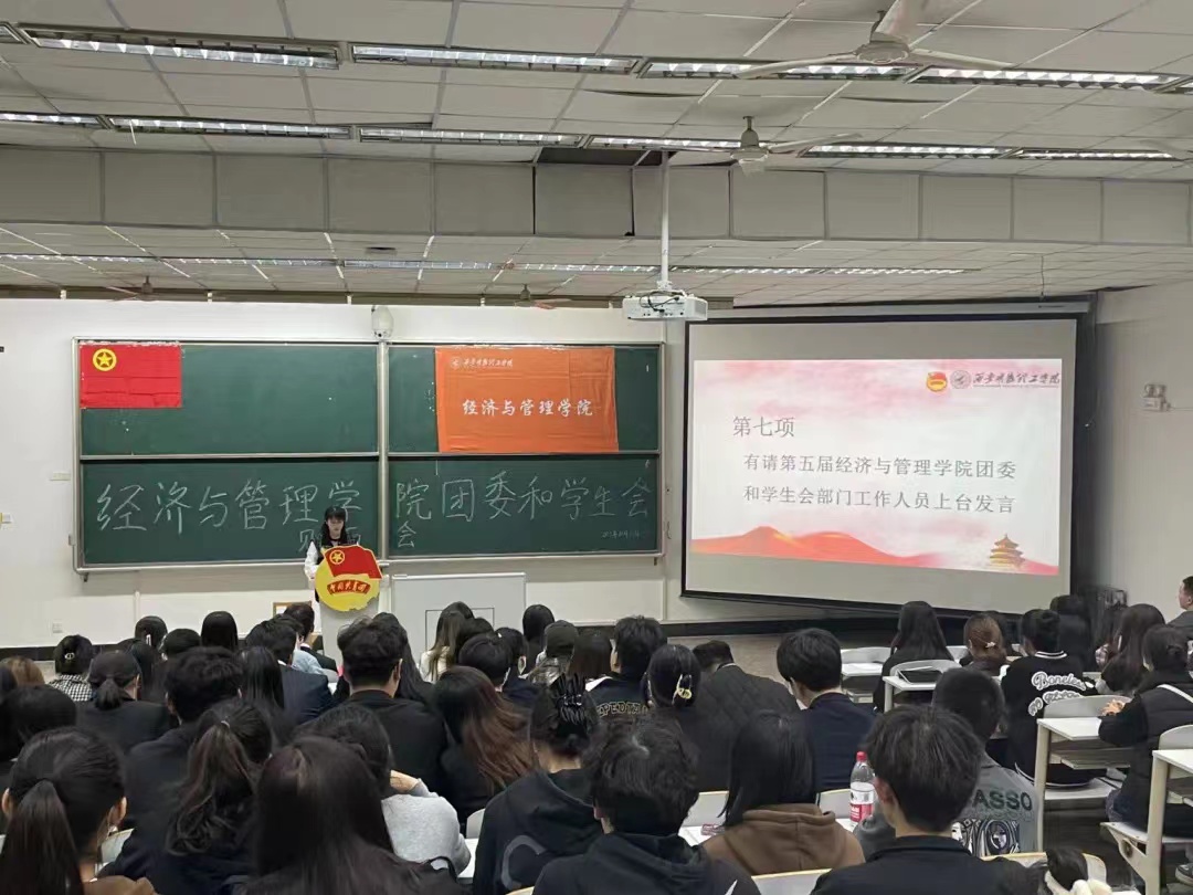 为了促进经济与管理学院团委和学生会各部门之间良好的沟通与联系,我院团委和学生会于2022年10月31日19:00在6号楼105举办了第五届经济与管理学院团委和学生会见面大会,出席本次会议的人员有经济与管理学院团委书记耿露老师、第四届团委副书记杨怡馨、第四届学生会主席团成员白清宇、于雯桦以及第五届经济与管理学院团委和学生会全体成员。