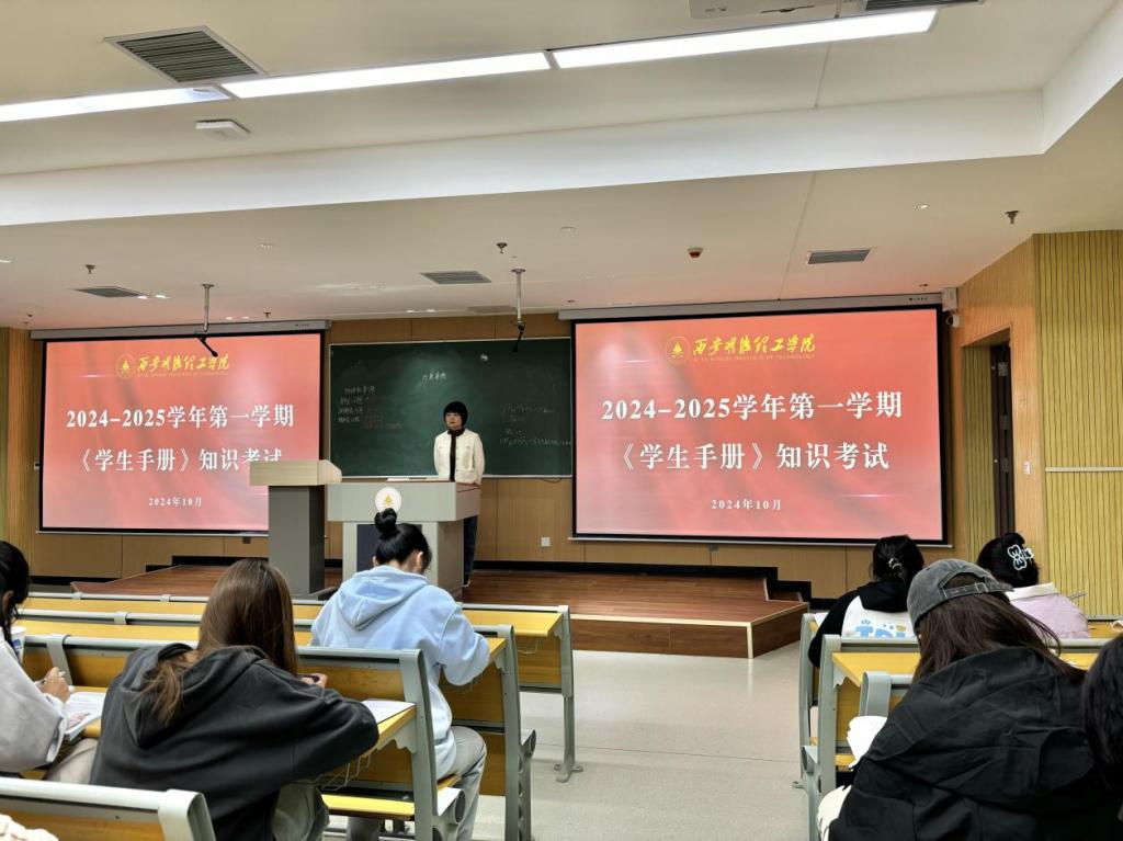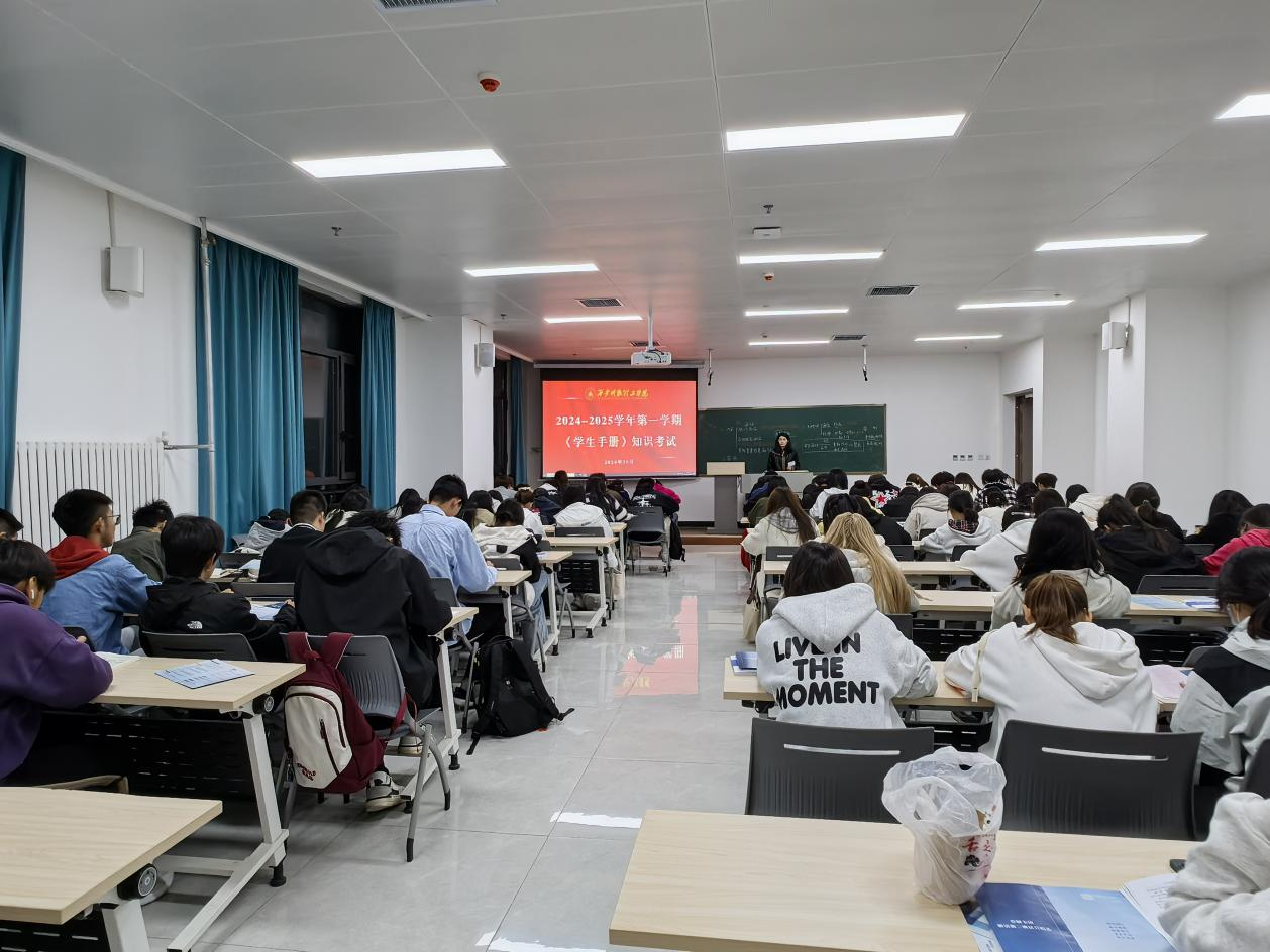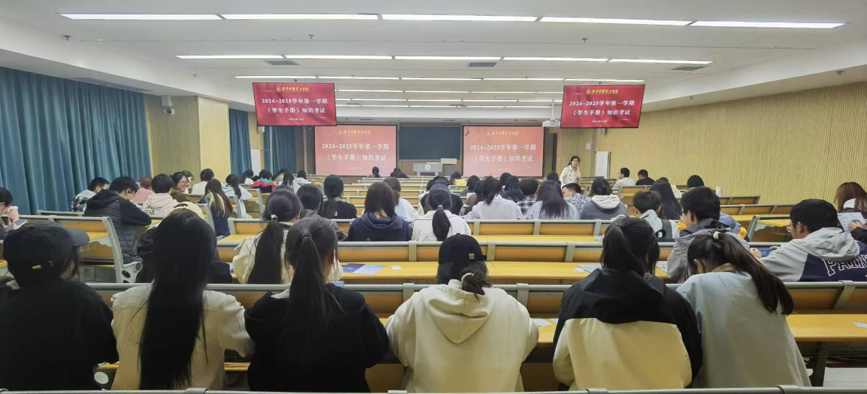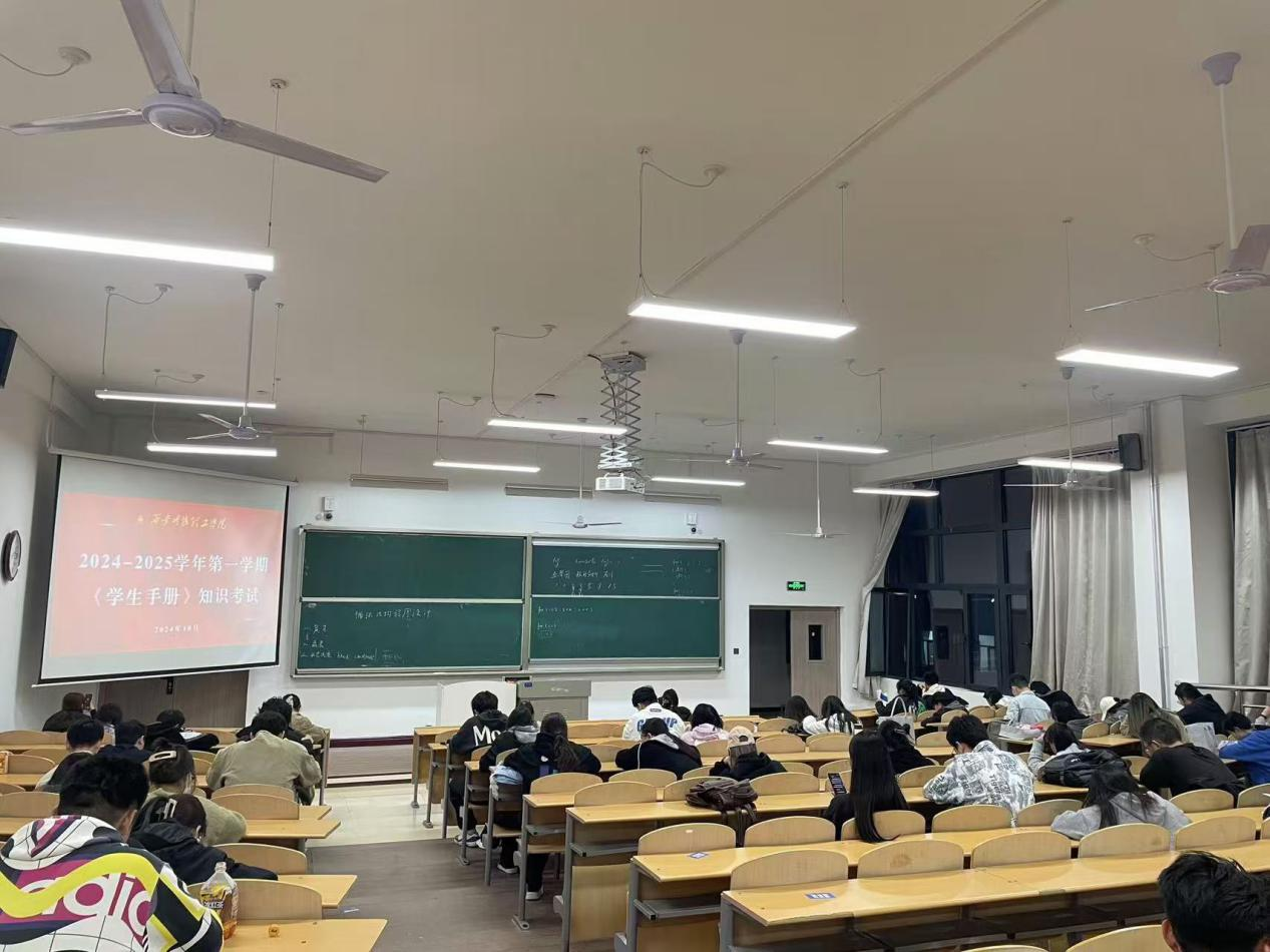 为加强2024级学生对学校各项规章制度的理解,全方位落实学校的校训、校风、教风和学风建设。根据党委学生工作部关于开展“学在明德”2024-2025学年第一学期 《学生手册》知识考试的通知安排,经济与管理学院于第5周在2024级学生各自习教室开展《学生手册》知识考试。学院2024级学生全员参考,各辅导员监考。