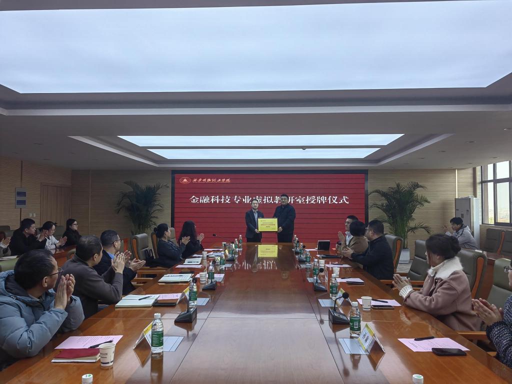 仪式上,经济与管理学院党委书记兼行政副院长何文举致辞,他对北京知链科技有限公司的慷慨捐赠表示衷心感谢,强调学校始终坚持产教融合、校企合作的办学理念,数字金融产业学院的建设是学校对接行业需求、培养应用型人才的重要举措,此次捐赠将为学校的教学实践与科研创新注入强劲动力。北京知链科技有限公司向数字金融产业学院捐赠了教学仪器设备,为学院实践教学条件的优化升级提供了有力保障。随后,企业向学院“金融科技专业虚拟教研室”授牌,将进一步推动学院在金融科技专业教学改革、资源共享及教研团队建设等方面的发展。