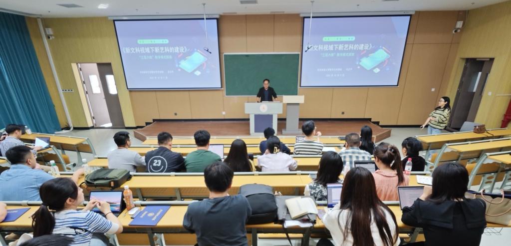 10 月 9 日下午,艺术与设计学院在 7#教学楼 201教室举办“新文科视域下新艺科的建设”教学理念与人才培养模式培训会,艺术与设计学院全体教师参加培训会。本次培训由艺术与设计学院副院长冯强教授主持,西安邮电大学数字艺术学院石云平副教授主讲。