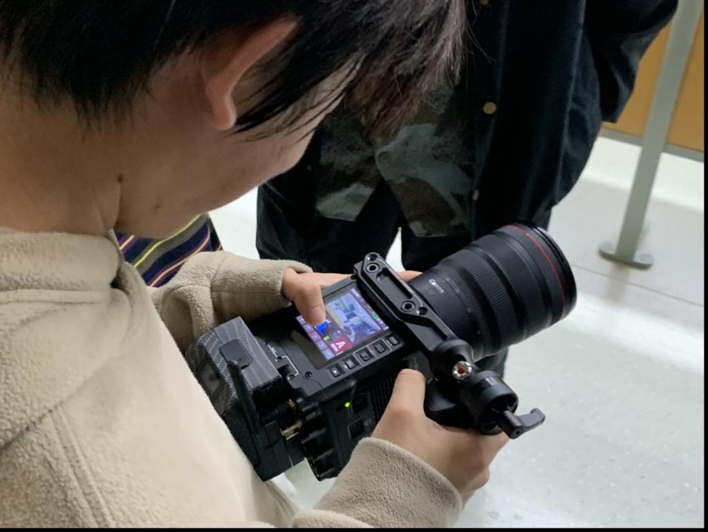 分享过程中王斌先生为同学们现场展示了RED摄影的操作方法和技巧,并邀请同学们现场体验。同学们对主流电影摄影机的操作和所表现出的卓越画质产生浓郁兴趣,争先尝试。
