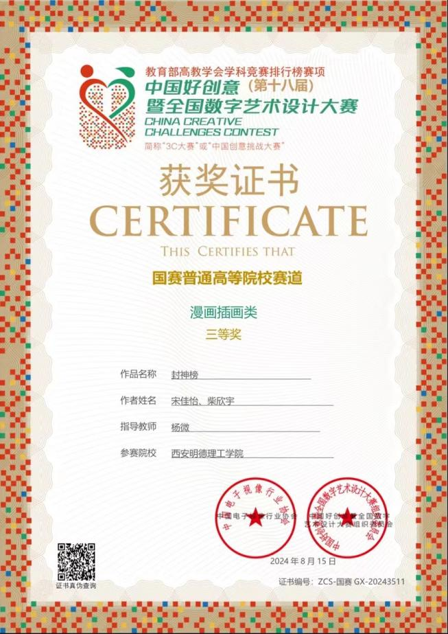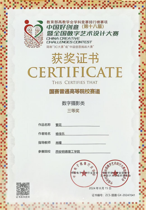 中国好创意暨全国数字艺术设计大赛(英文名:“China creative challenges contest”,简称“3c大赛”或者“中国创意挑战大赛”),是入选教育部中国高等教育学会发布的《全国普通高校学科竞赛分析报告》赛项,也是我国第一个以数字艺术设计、数字创意及数字媒体、数字技术创新领域各专业综合类规模大、参与院校多、影响广泛的权威赛事。