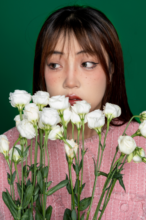 作品说明:作品选用不同的花种,将鲜花与女性结合,展现出女性独有的一面,温婉又坚韧,由此创造出富有生命力和美感的画面,鲜花作为画面的焦点和灵魂,不同的形状、色彩、种类都通过镜头表现出来,增了作品的层次与视觉冲击力,模特通过服装、造型、表情、姿势来与花朵形成对比,使得画面更和谐、更具故事性和情感共鸣。通过花与人的结合,传递出关于自然、生命和美的感受。