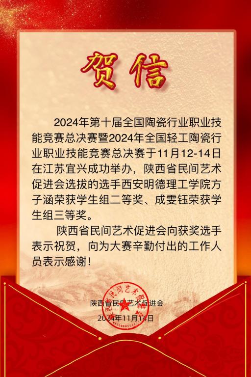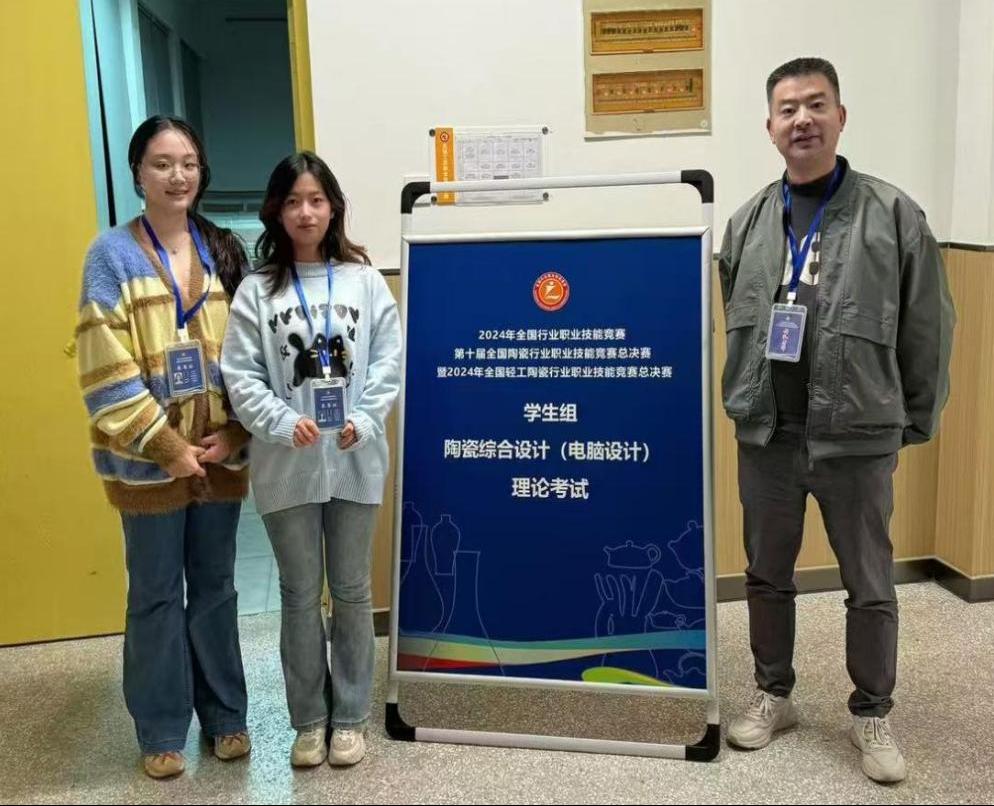 经过西北赛区的严格筛选,方子涵和成雯钰两位同学成功晋级国赛。在理论考试中,她们凭借扎实的专业知识,冷静应对,顺利通过了考核。进入实操竞赛阶段,她们更是以“赓续传承 守正创新”为主题,巧妙地将传统元素融入现代陶瓷设计中,展现了高超的技艺和独特的创意。