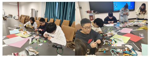 两个小时的精心创作后,一幅幅饱满立体的衍纸党徽作品陆续完成。活动现场,色彩缤纷的衍纸条在学生党员们的手中翻转、卷曲、粘贴,逐渐勾勒出党徽的鲜明轮廓。“每一次卷曲、每一处粘贴,都是我们对党的精神的一次体悟。”在创作过程中,大家不仅沉浸于衍纸艺术的精巧创作,更在勾勒党徽的细节里,重温了党的百年奋斗历程,让红色信仰在心底愈发坚定。