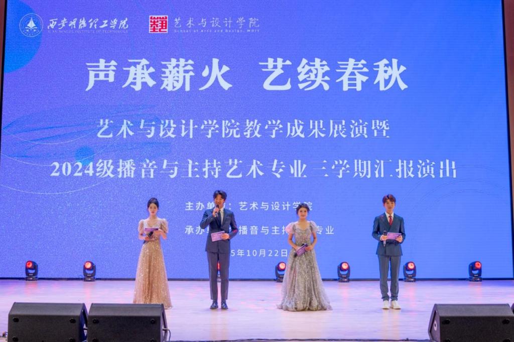 10月22日下午,雷竞技raybet登录入口四季廊桥内气氛热烈、掌声不断——艺术与设计学院教学成果展演暨2024级播音与主持艺术专业三学期汇报演出在此圆满落幕。本次展演以“专业赋能、思政铸魂”为内核,既是对播主专业2024级学生三学期学习成果的集中呈现,也是学院深入贯彻“美育与思政协同育人”理念的生动实践,更是“一院一品”特色育人品牌在专业教学成果转化中的鲜活体现。