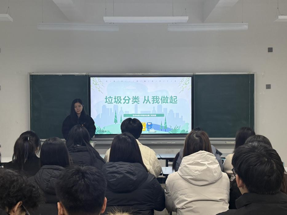 为深入贯彻绿色发展理念,积极响应生态文明建设号召。12月9日,艺术与设计学院学生第二党支部在3号教学楼212教室组织开展了“垃圾分类 从我做起”主题党日活动。活动由第二党支部书记丁婕主持,支部全体党员及部分入党积极分子共同参与,通过“党建引领+专业赋能”的特色模式,将理论教育与专业实践相结合,激发青年学子参与生态文明建设的责任意识与创造活力。