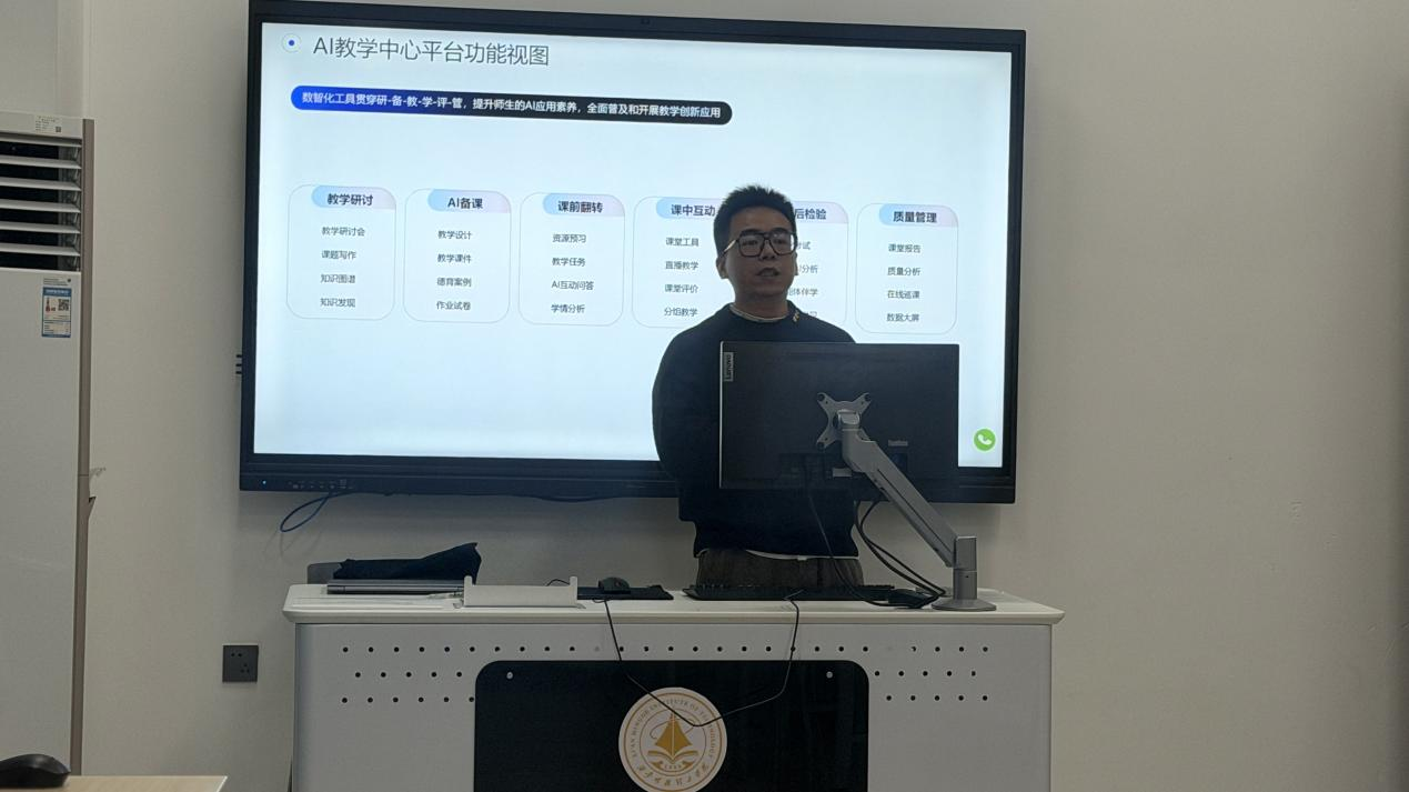本次培训聚焦“高校教学创新与教师AI素养提升”核心主题,聚焦四大关键方向:AI创新应用案例分享、数据整合、课程思政元素检索与跨学科融合。智慧树平台的专家结合艺术设计专业特色,通过实操演示、案例剖析与互动研讨等形式,系统讲解了AI课程平台的功能模块与应用场景。从智能备课工具的高效使用,到AI辅助课程思政元素挖掘,再到跨学科教学资源的整合方法,专家们的分享兼具理论深度与实践指导性,为教师们打开了数字化教学的新思路。