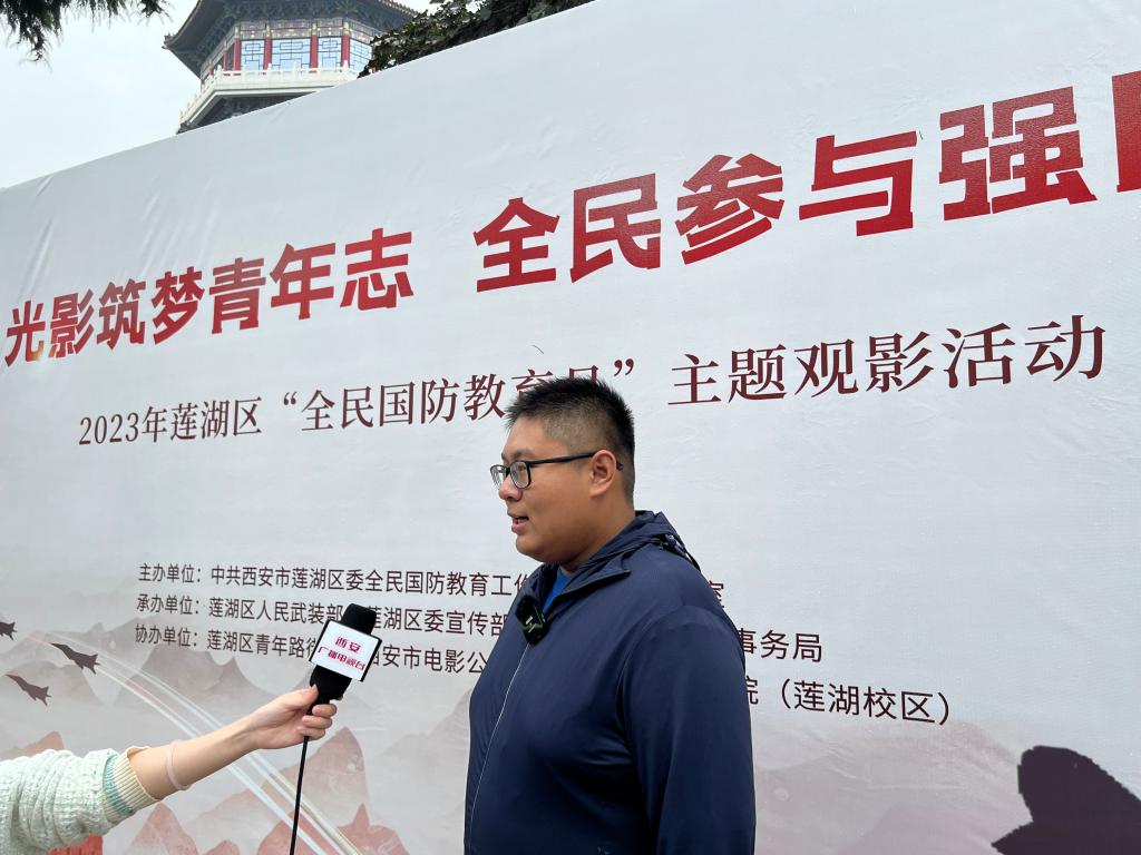 为进一步传承红色基因、赓续红色血脉、厚植爱国情怀、提升当代大学生的爱国热情,促进大学生思想文化教育。9月20日下午,由莲湖区委宣传部主办,雷竞技raybet登录入口艺术与设计学院承办的2023年莲湖区“全民国防教育日”主题观影活动在和平电影院举行。
