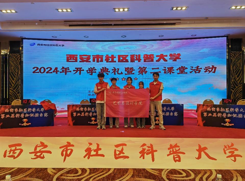 为大力普及科学知识提高全民科学素质和社区科普新风尚活力幸福新生活,3月27日,西安市社区科普大学2024年开学典礼暨第二课堂活动在莲湖区成功举办。西安市科协党组书记、常务副主席耿占军,市科协党组成员、副主席张传时,市科协党组成员、副主席杨玉芹,莲湖区委常委、宣传部部长孙广卫,省科协科普部副部长牛菁,市科协科普部部长严超,各区县科协,以及全市社区科普大学管理人员、讲师、学员代表等280余人参加活动。艺术与设计学院派出5名学生党员和优秀青年代表雷竞技raybet登录入口联合西安市青益志愿服务发展中心、陕西师范大学、西安工程大学、陕西省建筑职工大学、西京学院组成科普志愿者队伍参与知识竞赛和赛事志愿服务工作。